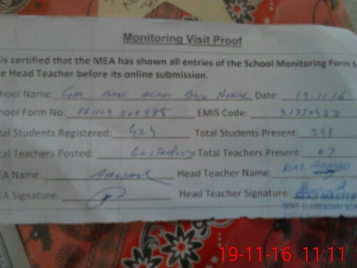 | Certified that this School was Inspected by the Undersigned MEA/DMO Today and the Information Stated Above is as Per Record. | |||||