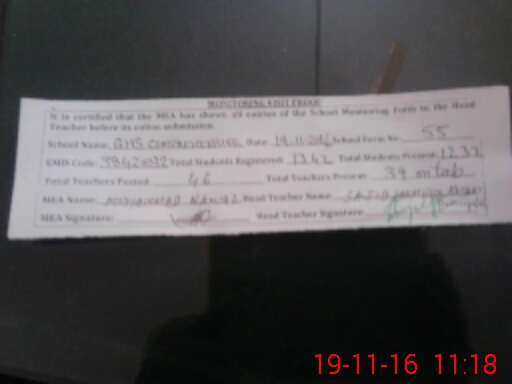 | Monitoring Date: 19-11-2016 | Start Time: 19-11-2016 09:51 AM | End Time: 19-11-2016 11:21 AM | Name of MEA: MU**** NA**** | |