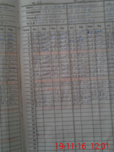 | CNIC | Full Name | Designation | R/C | Absence During Last Calender Month |