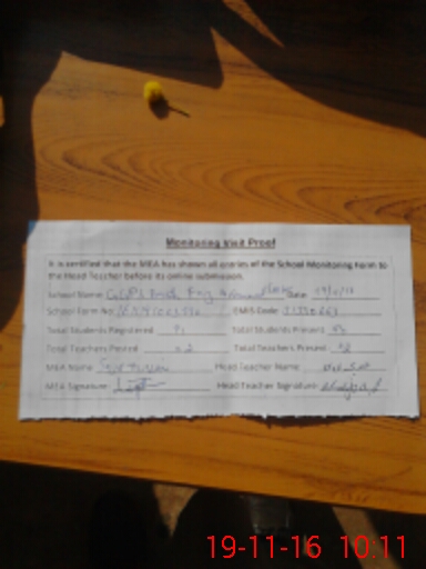 | Attendance Register | Head Teacher | MEA with School | Visit Proof |