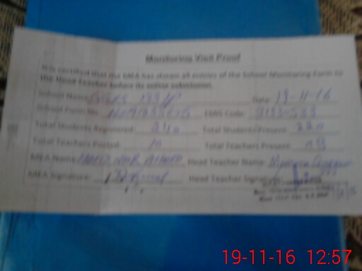 | Attendance Register | Head Teacher | MEA with School | Visit Proof |