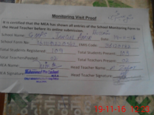 | EMIS Code: 36120188 | Name of School: GMPS JANGAL AMIR HUSSAIN (JALAL ABAD) | |||