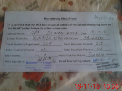 | EMIS Code: 36120102 | Name of School: GPS DEEWAN WALA P/O LASURI MAOZA PUNJANI | |||