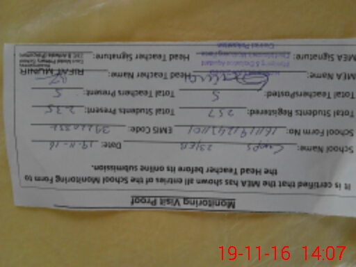 | Attendance Register | Head Teacher | MEA with School | Visit Proof |