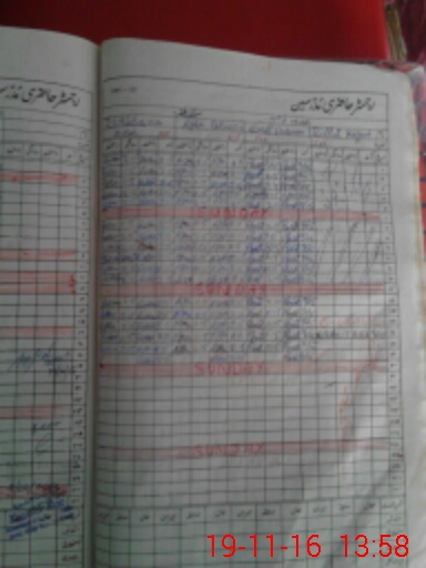 | CNIC | Full Name | Designation | R/C | Absence During Last Calender Month |