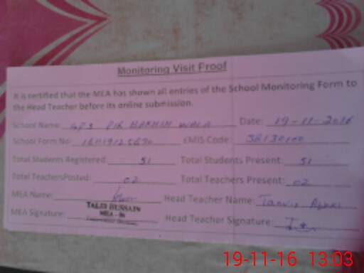 | EMIS Code: 38130100 | Name of School: GPS PIR BUKHSH WALA | |||