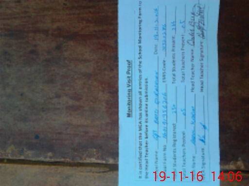 | Attendance Register | Head Teacher | MEA with School | Visit Proof |