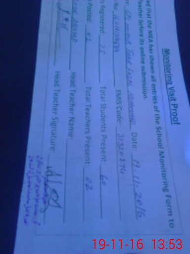 | Certified that this School was Inspected by the Undersigned MEA/DMO Today and the Information Stated Above is as Per Record. | |||||