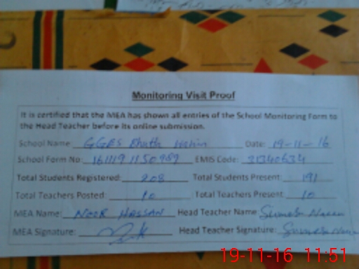 | Certified that this School was Inspected by the Undersigned MEA/DMO Today and the Information Stated Above is as Per Record. | |||||