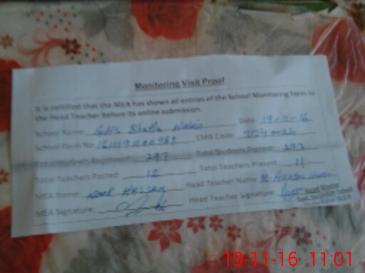 | Attendance Register | Head Teacher | MEA with School | Visit Proof |