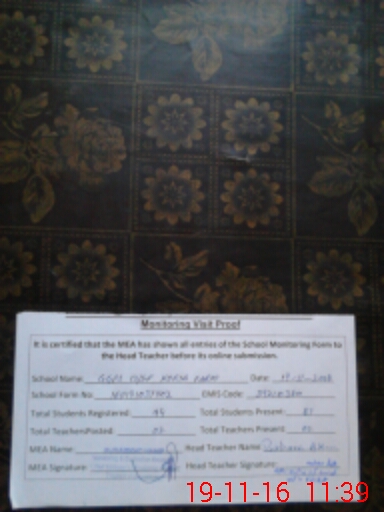 | Certified that this School was Inspected by the Undersigned MEA/DMO Today and the Information Stated Above is as Per Record. | |||||