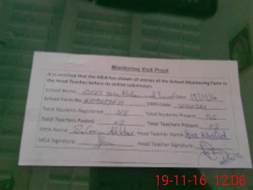 | Certified that this School was Inspected by the Undersigned MEA/DMO Today and the Information Stated Above is as Per Record. | |||||