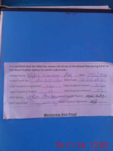 | Attendance Register | Head Teacher | MEA with School | Visit Proof |