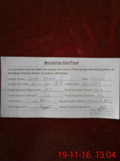 | Certified that this School was Inspected by the Undersigned MEA/DMO Today and the Information Stated Above is as Per Record. | |||||