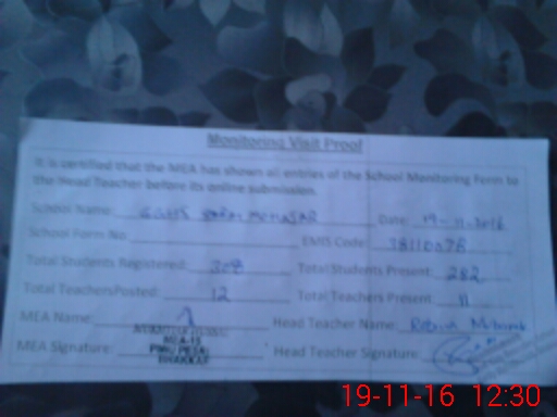 | Certified that this School was Inspected by the Undersigned MEA/DMO Today and the Information Stated Above is as Per Record. | |||||