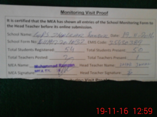 | EMIS Code: 35430389 | Name of School: GPS JHALLAR SUNDER | |||