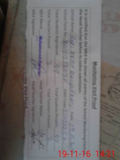 | Certified that this School was Inspected by the Undersigned MEA/DMO Today and the Information Stated Above is as Per Record. | |||||