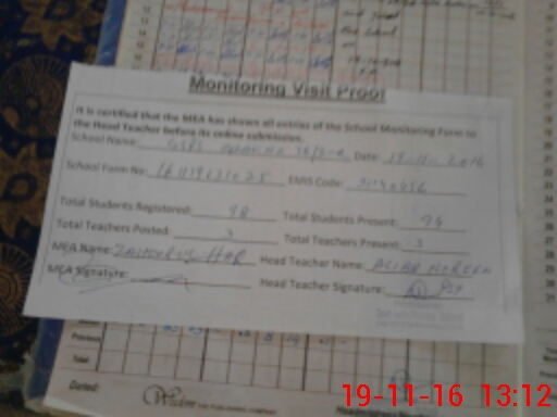 | Attendance Register | Head Teacher | MEA with School | Visit Proof |