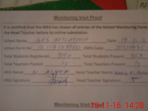 | Certified that this School was Inspected by the Undersigned MEA/DMO Today and the Information Stated Above is as Per Record. | |||||