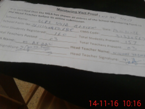 | Certified that this School was Inspected by the Undersigned MEA/DMO Today and the Information Stated Above is as Per Record. | |||||