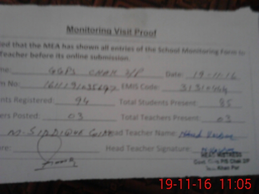 | EMIS Code: 31310444 | Name of School: GGPS CHAK NO. 2/P | |||