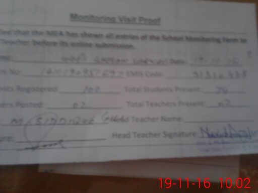 | Certified that this School was Inspected by the Undersigned MEA/DMO Today and the Information Stated Above is as Per Record. | |||||