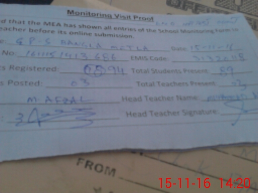| Attendance Register | Head Teacher | MEA with School | Visit Proof |