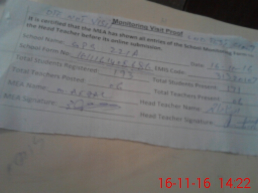 | Attendance Register | Head Teacher | MEA with School | Visit Proof |