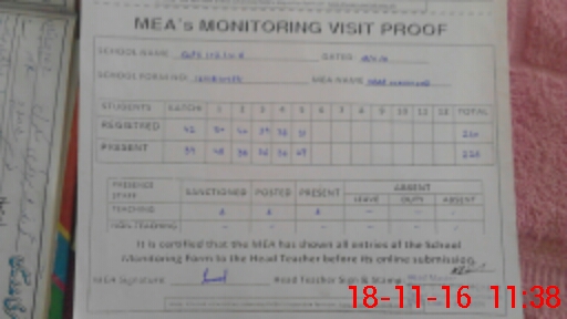 | Attendance Register | Head Teacher | MEA with School | Visit Proof |