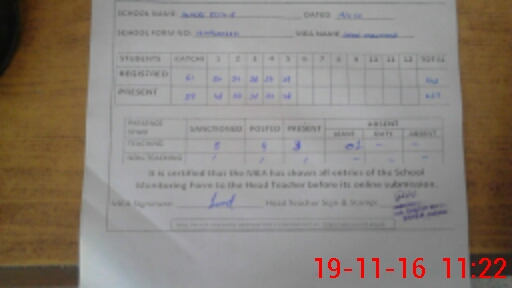 | Attendance Register | Head Teacher | MEA with School | Visit Proof |