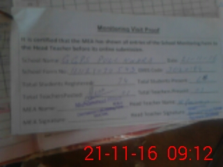 | Attendance Register | Head Teacher | MEA with School | Visit Proof |