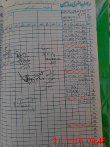 | CNIC | Full Name | Designation | R/C | Absence During Last Calender Month |
