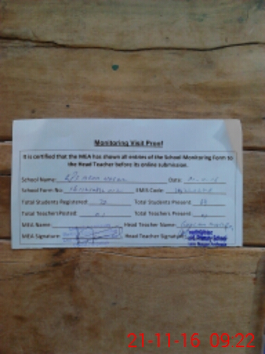| Attendance Register | Head Teacher | MEA with School | Visit Proof |