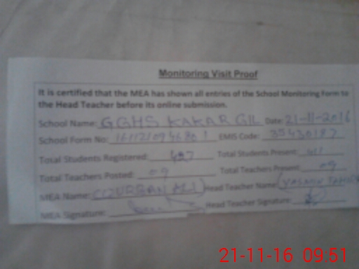 | EMIS Code: 35430187 | Name of School: GGHS KAKKAR GILL | |||