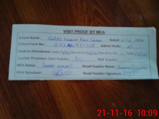 | Attendance Register | Head Teacher | MEA with School | Visit Proof |