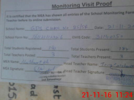 | EMIS Code: 31140150 | Name of School: GPS CHAK NO 85/5-R (E) | |||