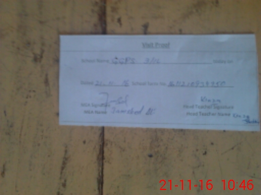 | Attendance Register | Head Teacher | MEA with School | Visit Proof |