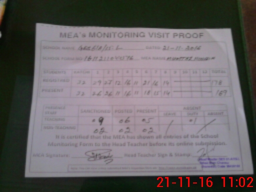 | Attendance Register | Head Teacher | MEA with School | Visit Proof |