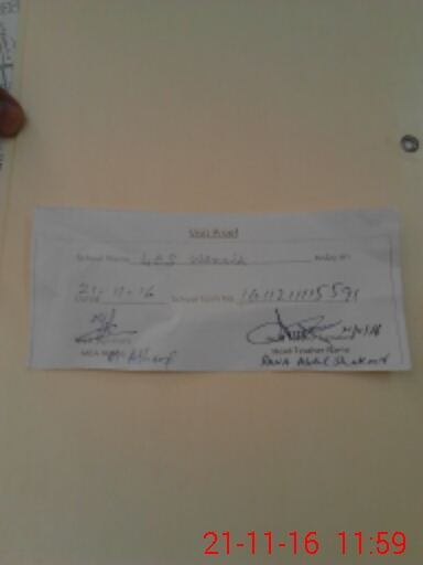 | School Visited by School Health & Nutrition Supervisor (No. of Visits) | 1 | Name1: | NABILA | Name2: | |