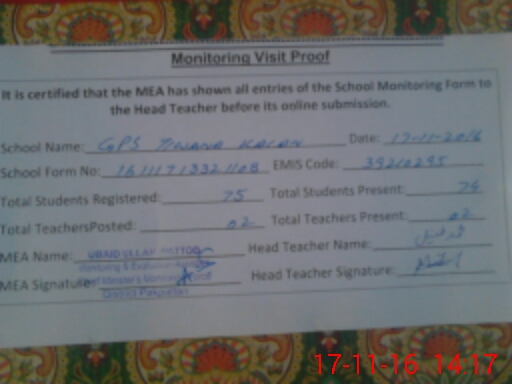 | EMIS Code: 39210295 | Name of School: GPS TIWANA KALAN | |||