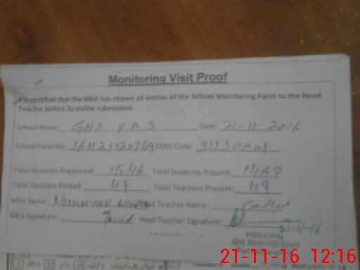 | Attendance Register | Head Teacher | MEA with School | Visit Proof |