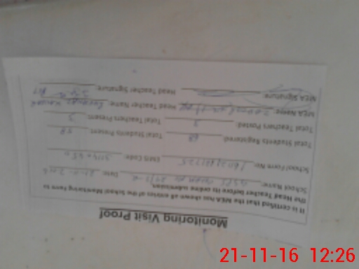 | Attendance Register | Head Teacher | MEA with School | Visit Proof |