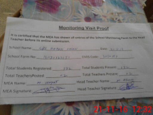 | Certified that this School was Inspected by the Undersigned MEA/DMO Today and the Information Stated Above is as Per Record. | |||||