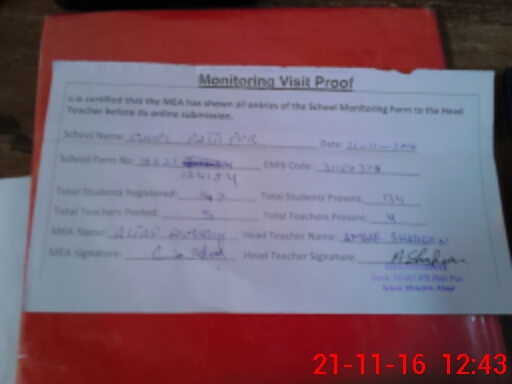 | Certified that this School was Inspected by the Undersigned MEA/DMO Today and the Information Stated Above is as Per Record. | |||||