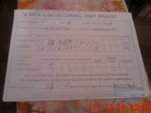 | Attendance Register | Head Teacher | MEA with School | Visit Proof |