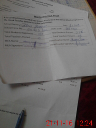 | Attendance Register | Head Teacher | MEA with School | Visit Proof |