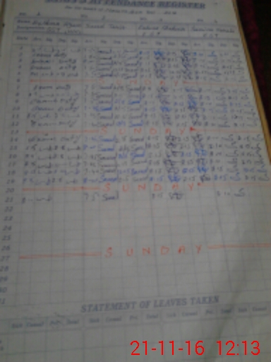 | CNIC | Full Name | Designation | R/C | Absence During Last Calender Month |