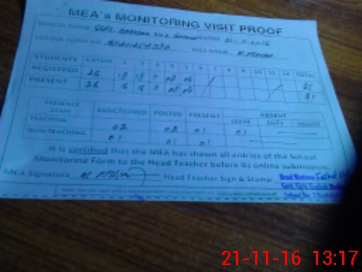 | Attendance Register | Head Teacher | MEA with School | Visit Proof |