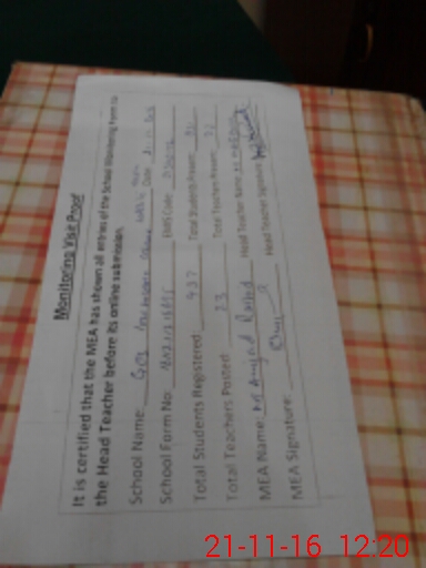 | Certified that this School was Inspected by the Undersigned MEA/DMO Today and the Information Stated Above is as Per Record. | |||||
