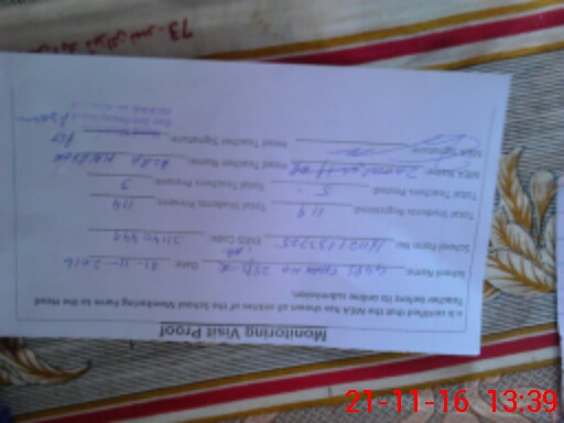 | Monitoring Date: 21-11-2016 | Start Time: 21-11-2016 12:50 PM | End Time: 21-11-2016 01:42 PM | Name of MEA: Za**** BN**** | |